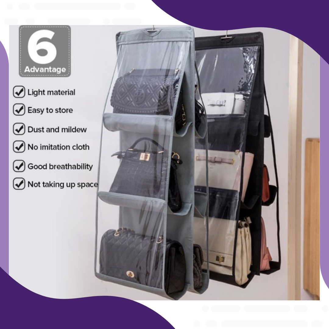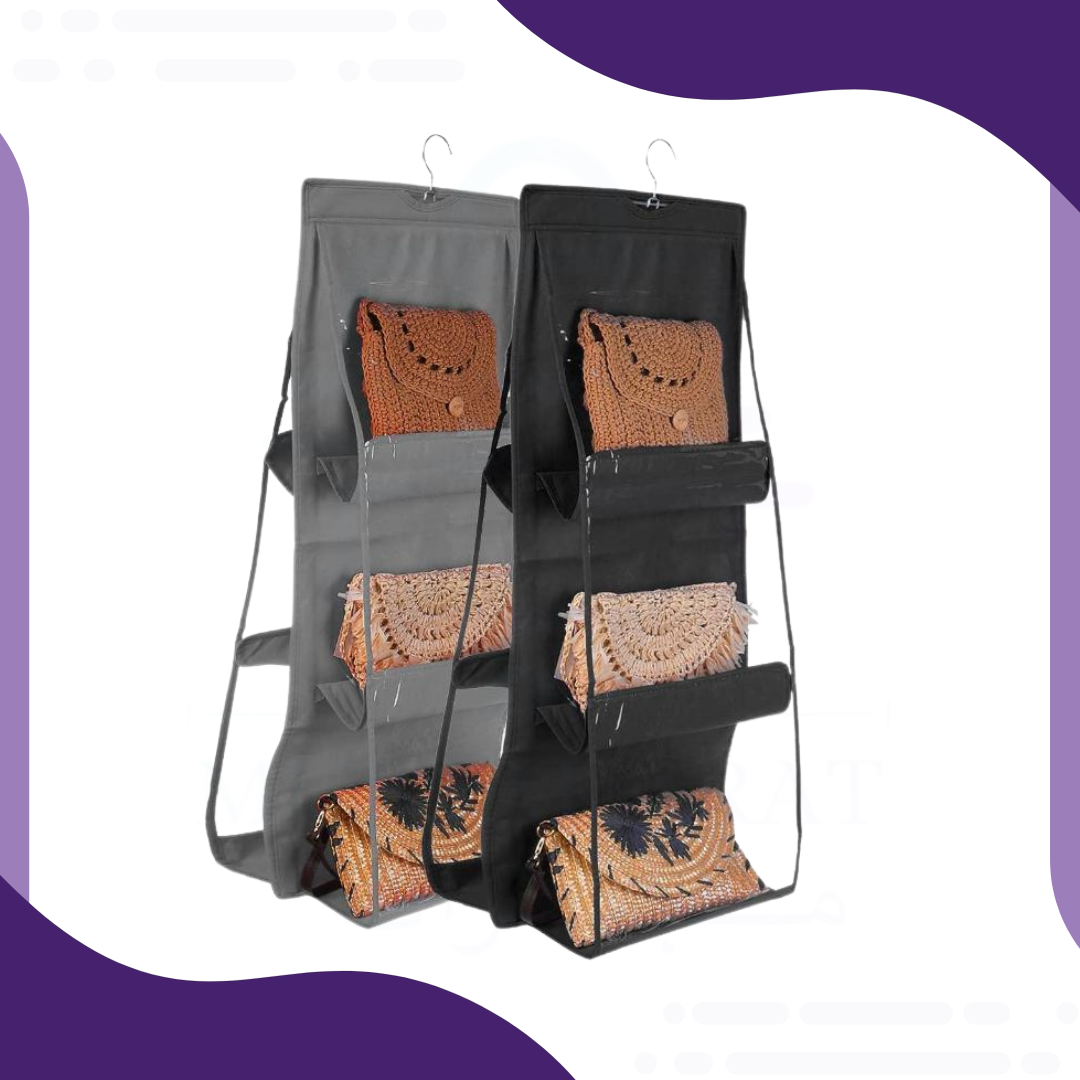 - منظم يتميز بتوفير المساحة وترتيب وحفظ الحقائب بخزانة الملابس ويجعل منظرها أكثر نظافة وتنظيماً بدلاً من تراكمها.