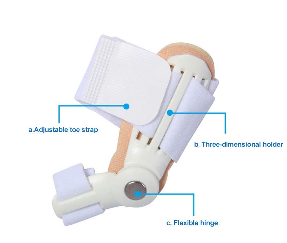 - يسمح التصميم المفصلي بثني القدم بشكل مريح مما يوفر دعمًا ثابتًا للحركة الحرة وإعادة استقامة ومحاذاة أصابع القدم إلى وضعها الطبيعي.